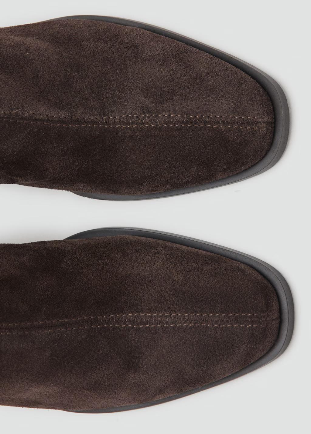 100% piel bovino. Piel de serraje. Punta redonda. Tacón bloque. Cierre de cremallera. El tacón mide 5,5 cm