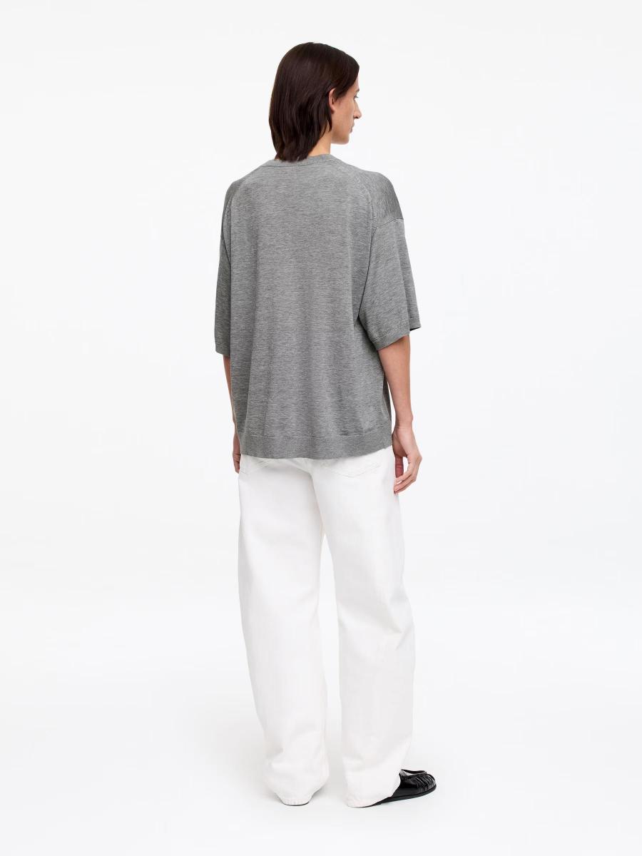 With refined ease, this knitted short-sleeve top features a V-neck and ribbed trims. It is crafted from a soft silk-cotton blend. Loose fit.ARKET/Women's clothes/Women's knitwear