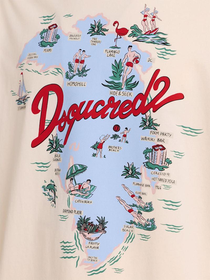 Loose fit printed cotton t-shirt - 象牙色 - 男士 - Dsquared2 - Crewneck.