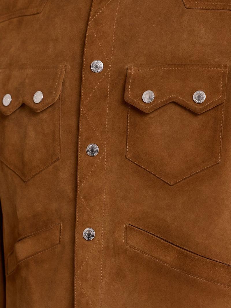 Boxy麂皮衬衫 - 白兰地色 - 男士 - Dsquared2 - 正面按扣开合.