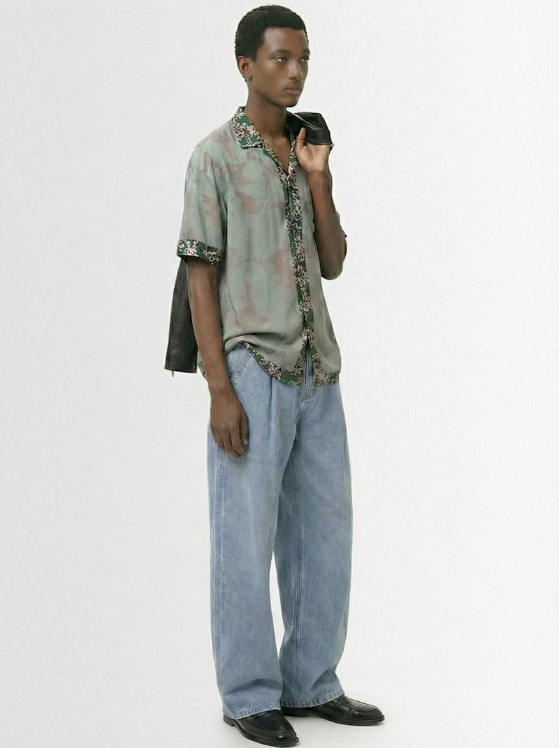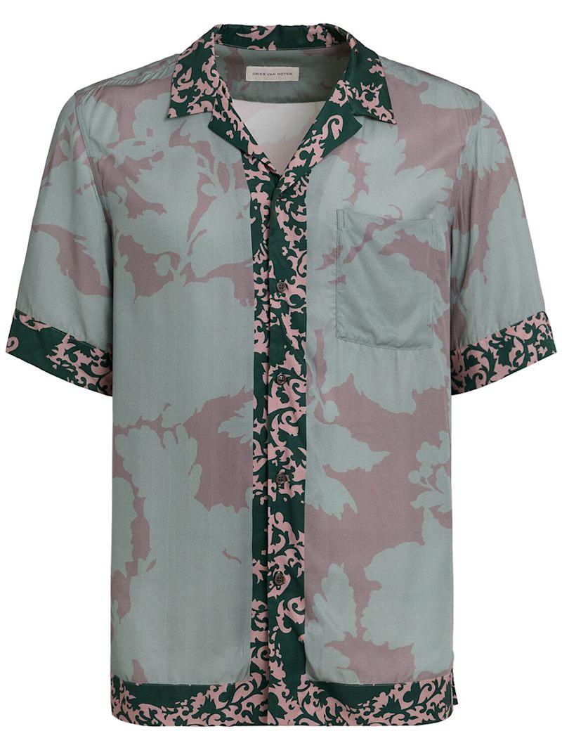 Carltone短袖铜氨纤维衬衫 - 石油蓝 - 男士 - Dries Van Noten - 正面纽扣开合.