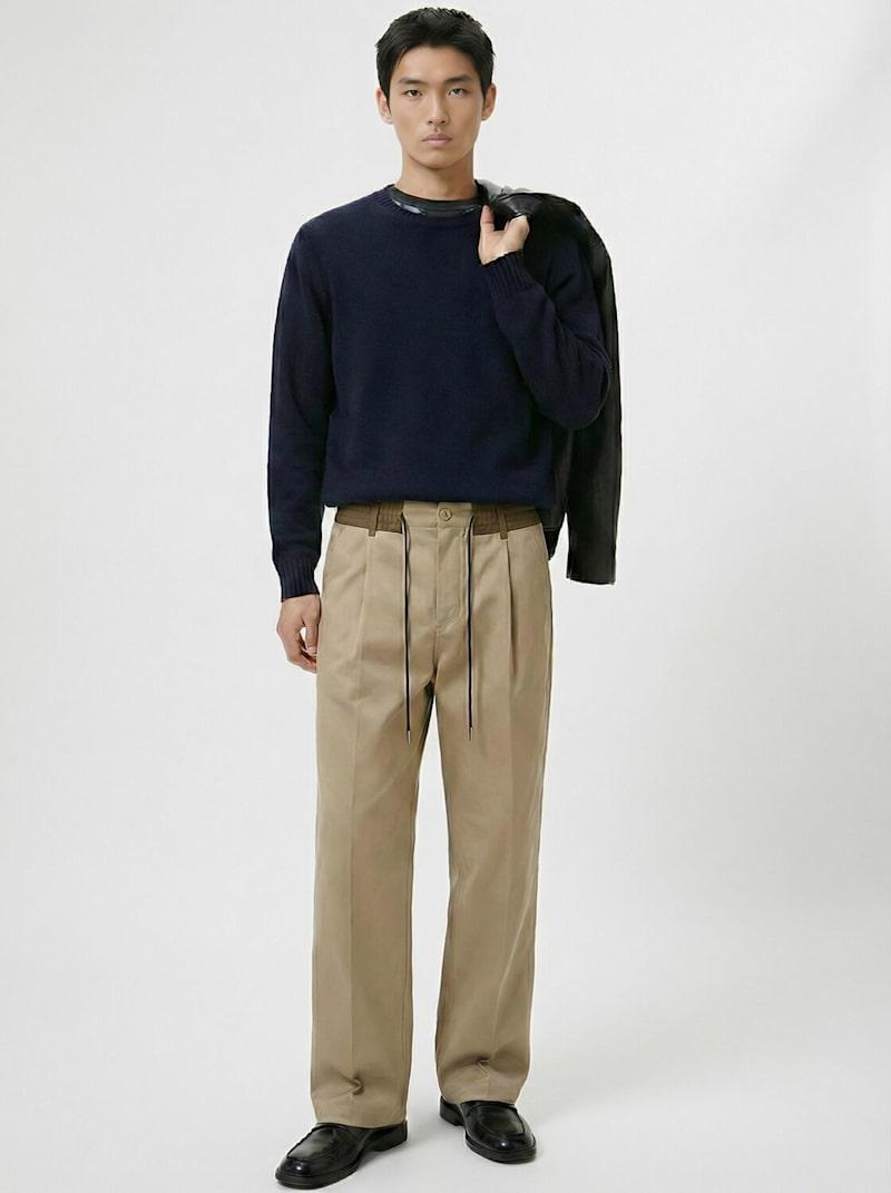 奇诺西装裤 - 米黄色 - 男士 - Sacai - 正面纽扣和隐藏式拉链开合.