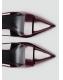 Efecto charol. Diseño destalonado. Con punta. Pieza rectangular. Tacón embudo. Sin cierre. El tacón mide 8 cm