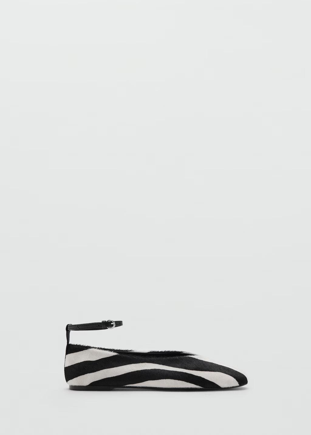 100% piel bovino con pelo. Flat. Punta cuadrada. Pulsera en el tobillo. Cierre de hebilla. Forro interior. Exclusivo Online