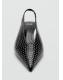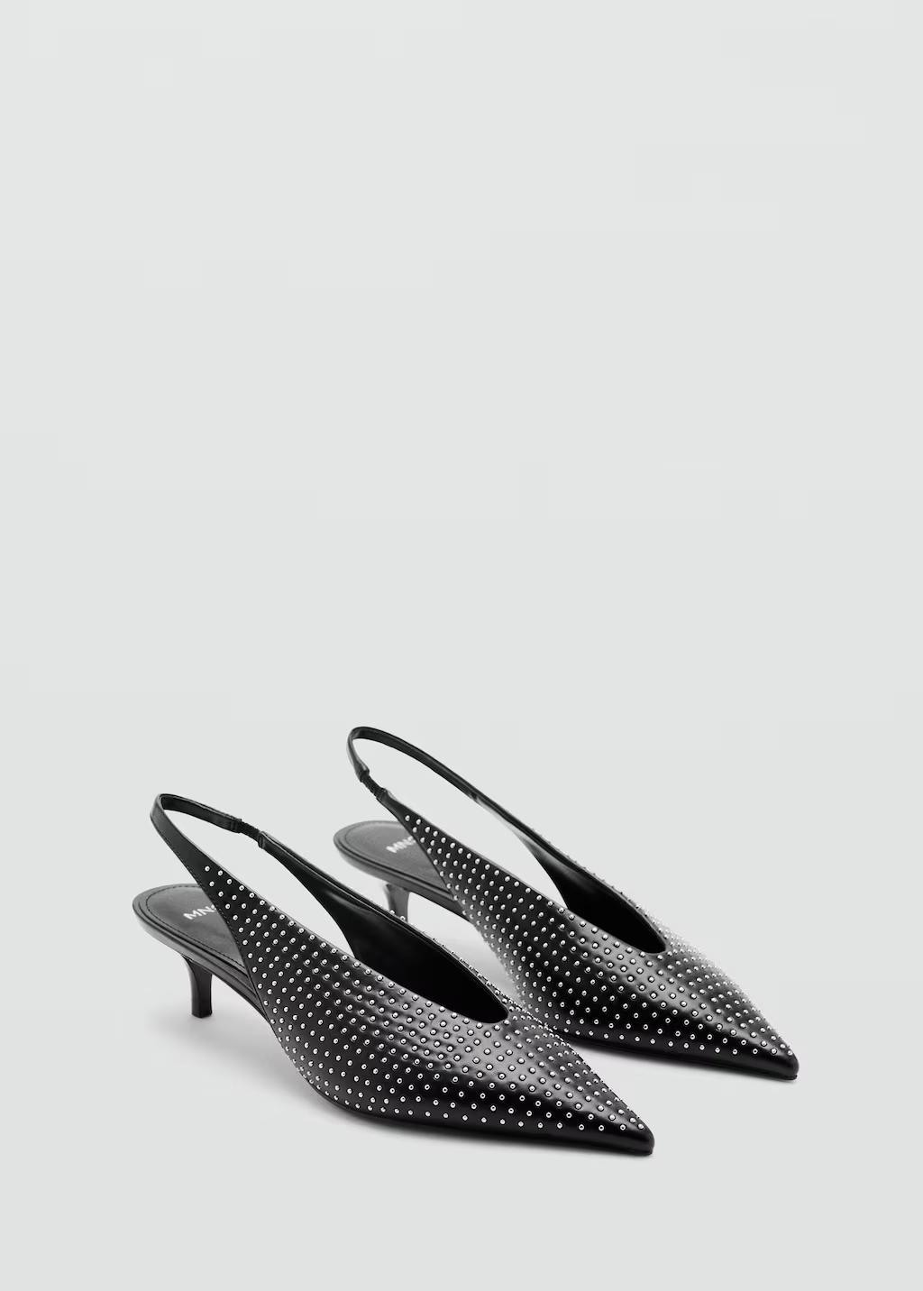 Detalle de tachas. Con punta. Tacón kitten. Cierre de tira. El tacón mide 4 cm