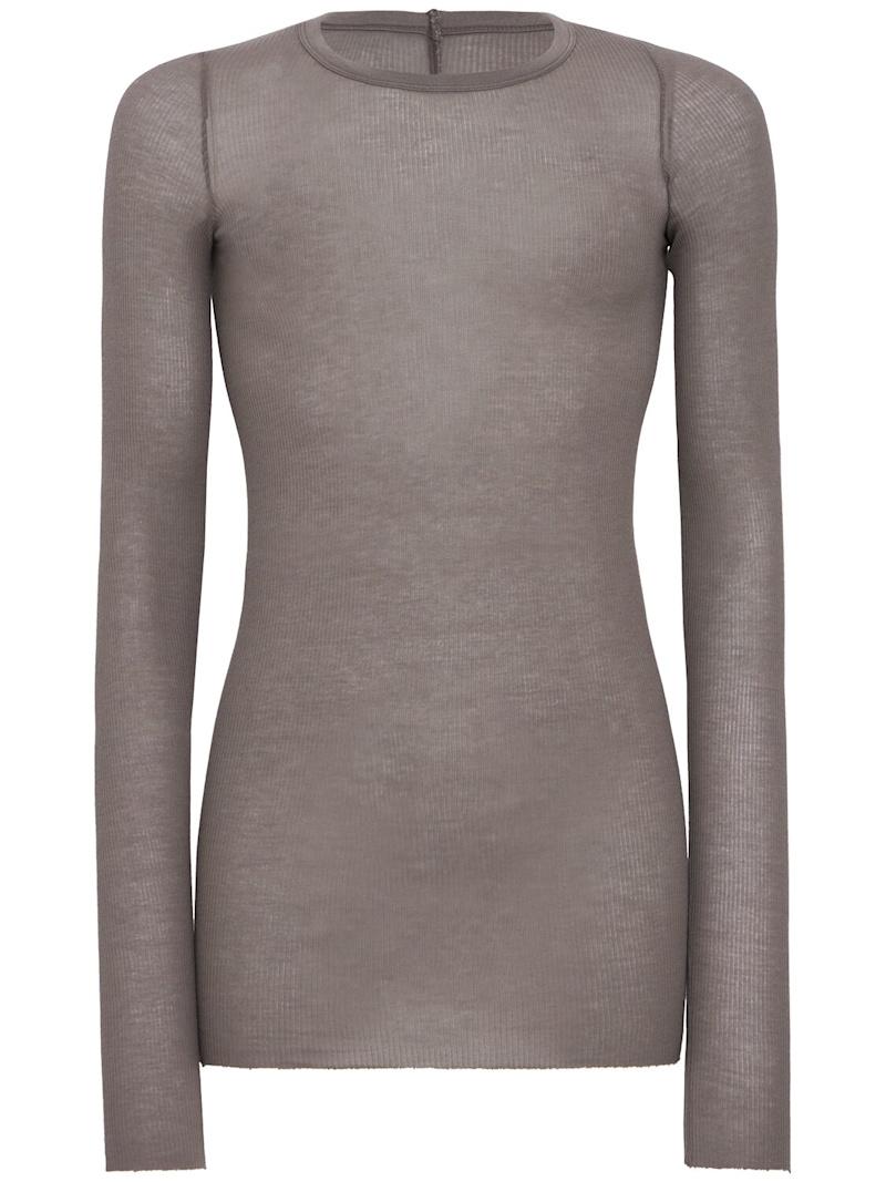 Ribbed viscose blend l/s t-shirt - Milk - 男士 - Rick Owens - Crewneck