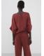 Diseño recto. Cuello redondo. Manga tres cuartos. Cierre de botón en el cuello. Total look