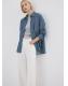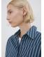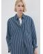 Tejido de algodón estilo tejano vaquero. Diseño oversize. Estampado Rayas. Cuello camisero. Manga larga con puños abotonados. Bolsillo de parche en el pecho. Cierre delantero con botones. Total look