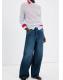 Tejido de algodón estilo tejano vaquero. Diseño balloon. Tiro medio. Trabillas. Cinco bolsillos. Cierre de botón y cremallera