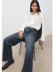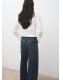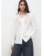 Diseño recto. Detalles calados bordados en el escote. Cuello camisero. Manga larga con puños abotonados. Cierre delantero de botones oculto con tapeta