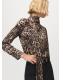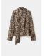 Con diseño recto y estampado animal print, esta prenda presenta un cuello perkins con adorno de fular. Las mangas largas tienen puños abotonados y el cierre de botones se encuentra en la parte posterior