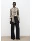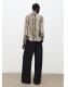 Con diseño recto y estampado animal print, esta prenda presenta un cuello perkins con adorno de fular. Las mangas largas tienen puños abotonados y el cierre de botones se encuentra en la parte posterior