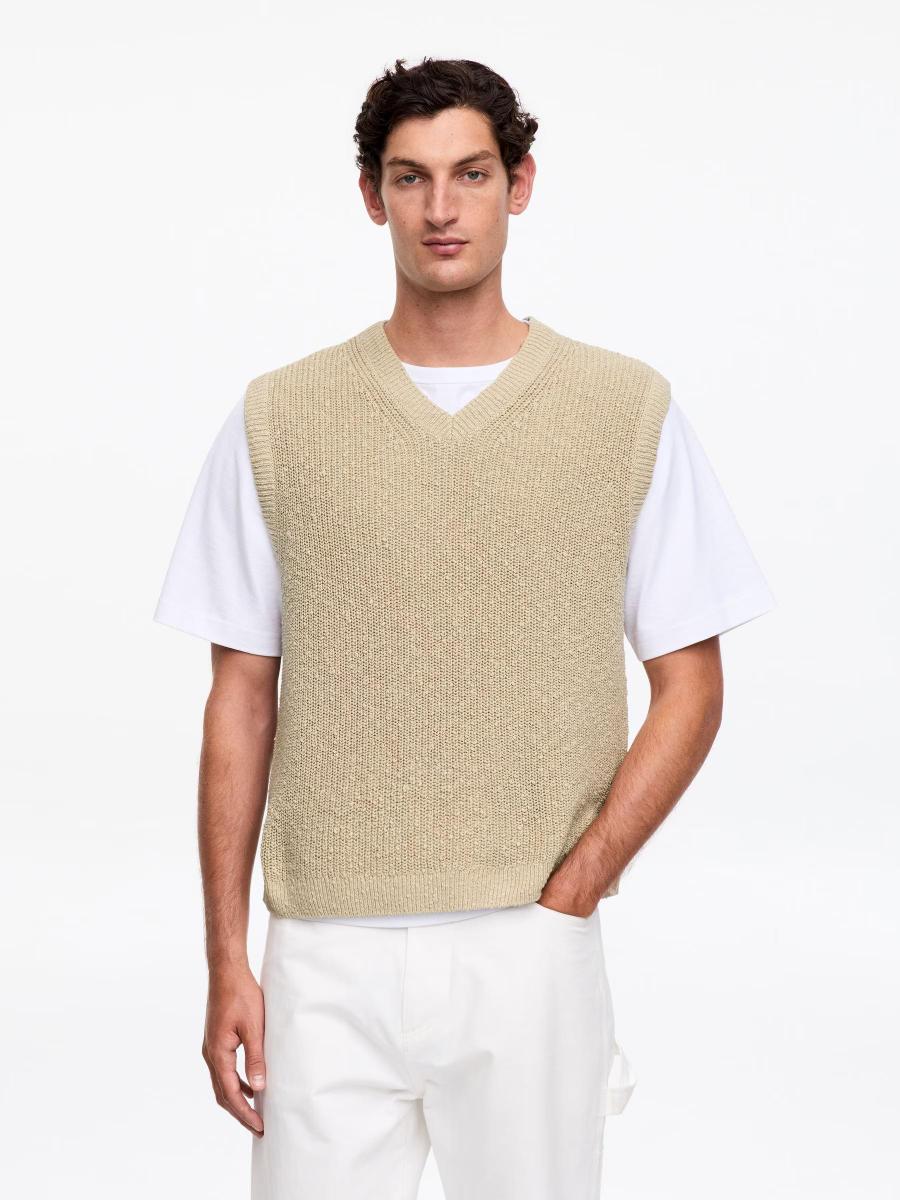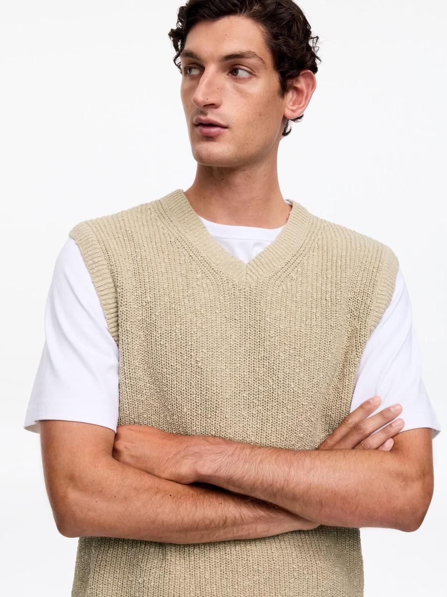 Cotton linen blended vest knitted in an irregular yarn that gives texture to the surface. Cut for a regular fit and detailed with a V-neck and rib-knitted trims.ARKET/Men's clothes/Men's knitwear