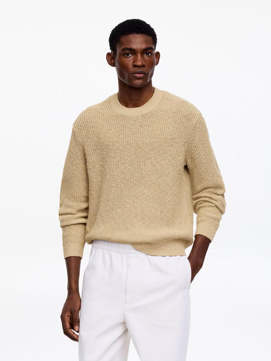 Cotton linen blended jumper knitted in an irregular yarn that gives texture to the surface. A crew-neck style, cut for a regular fit and detailed with rib-knitted trims.ARKET/Men's clothes/Men's knitwear/Men's crew-neck jumpers