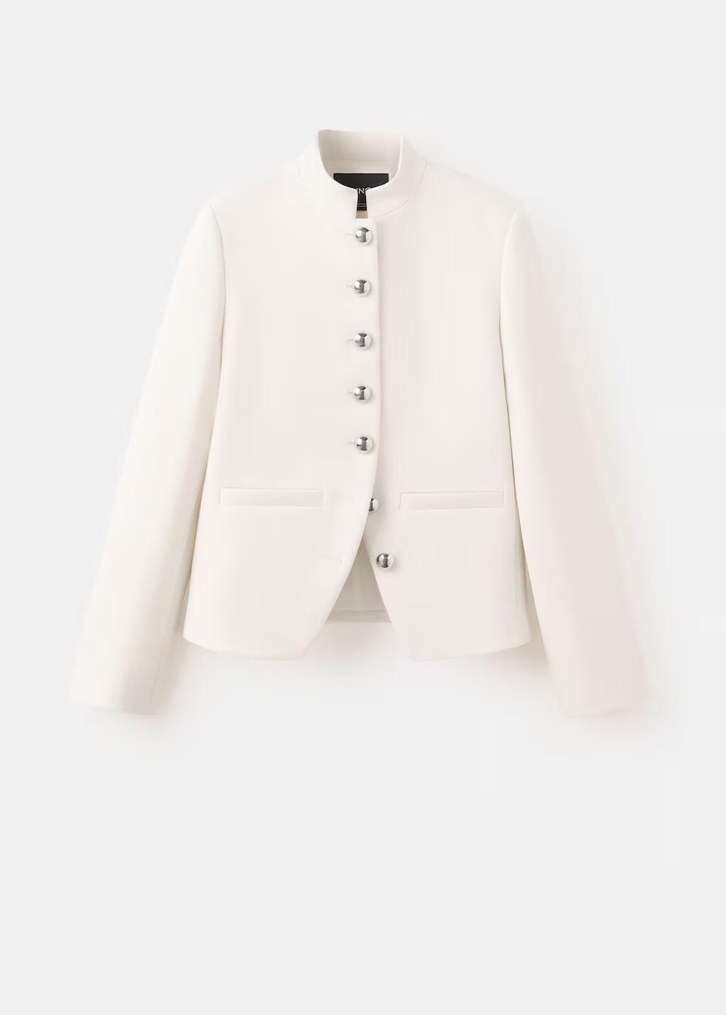 Diseño recto. Cuello de tira. Manga larga con puños abotonados. Cierre de botones en la parte delantera. Dos bolsillos de ribete frontales. Forro interior. Disponible Plus