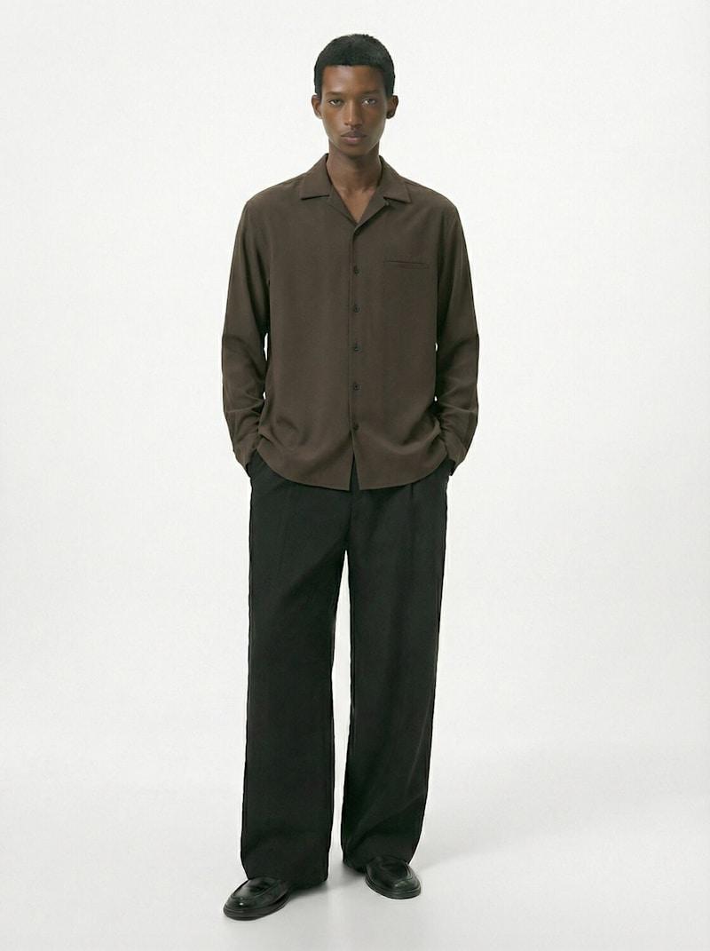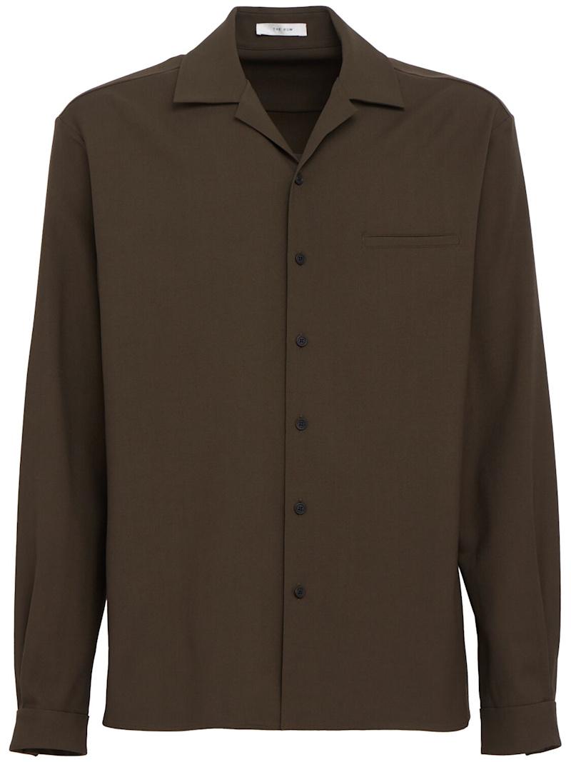 Kanta光滑柔软羊毛衬衫 - Sepia Khaki - 男士 - The Row - 正面纽扣开合.