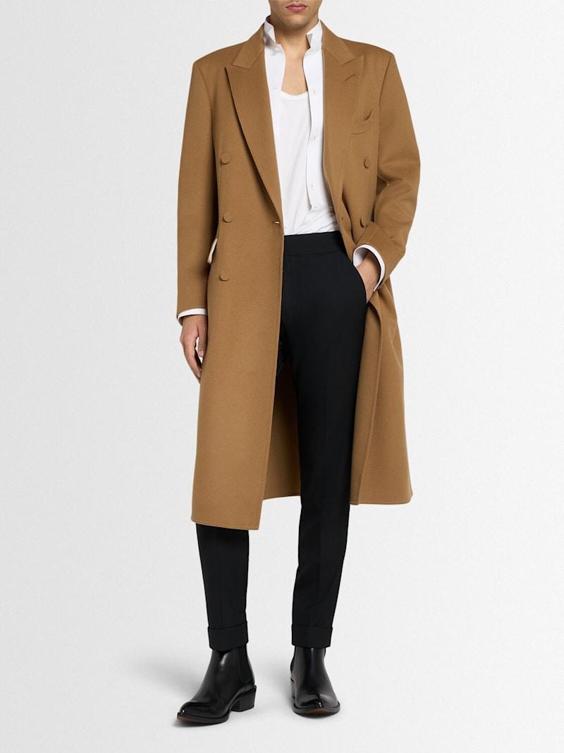 羊毛&羊绒大衣 - 驼色 - 男士 - Tom Ford - 正面纽扣开合.