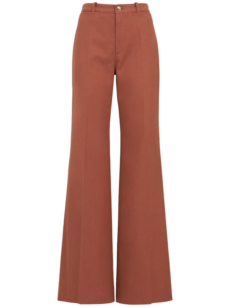 棉质帆布高腰长裤