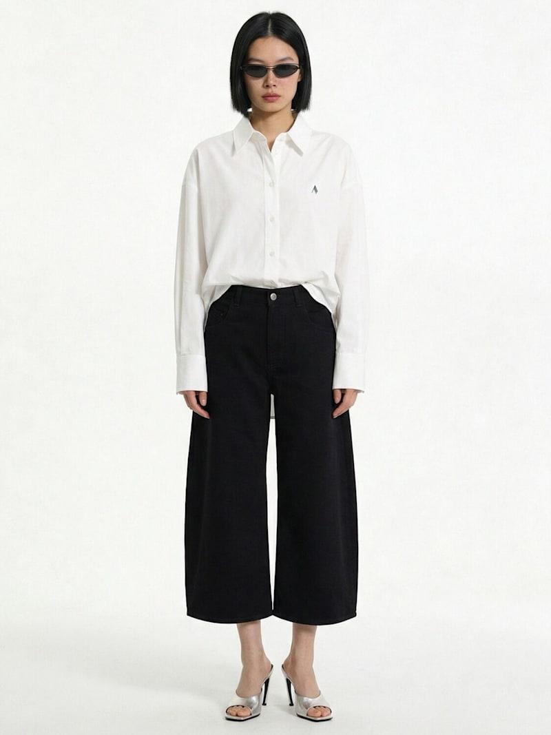 曲线设计短款牛仔裤 - 黑色 - 女士 - The Attico - 正面纽扣和隐藏式拉链开合.