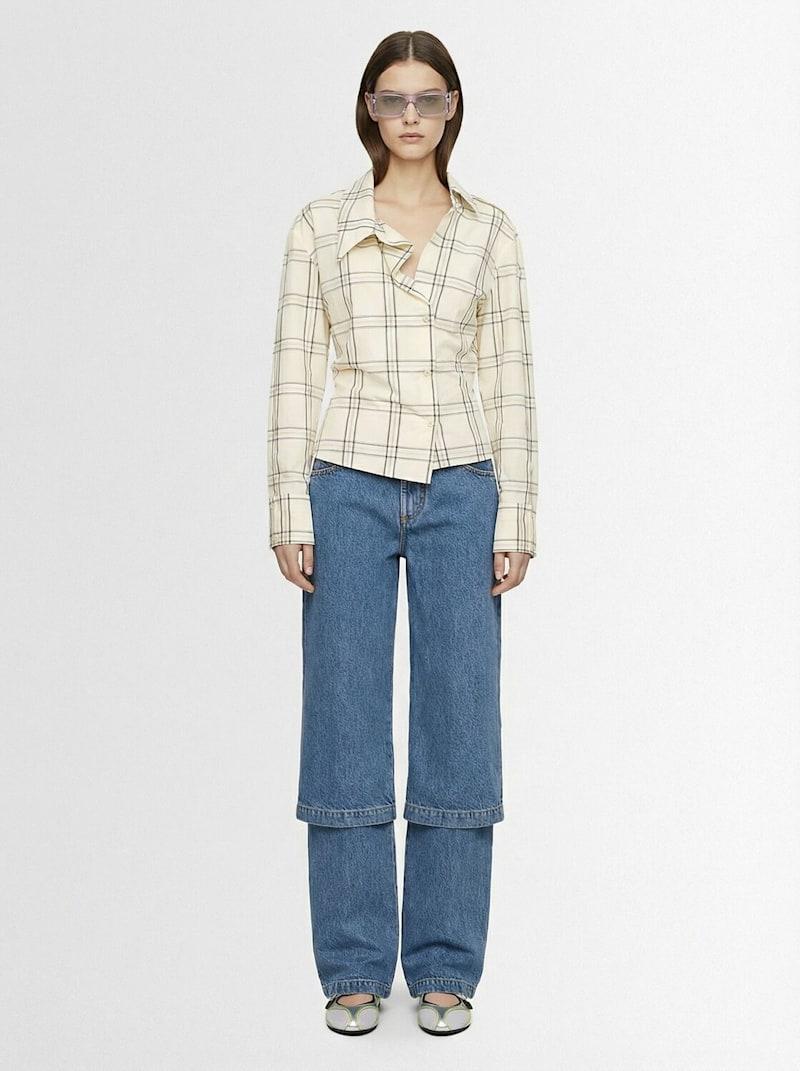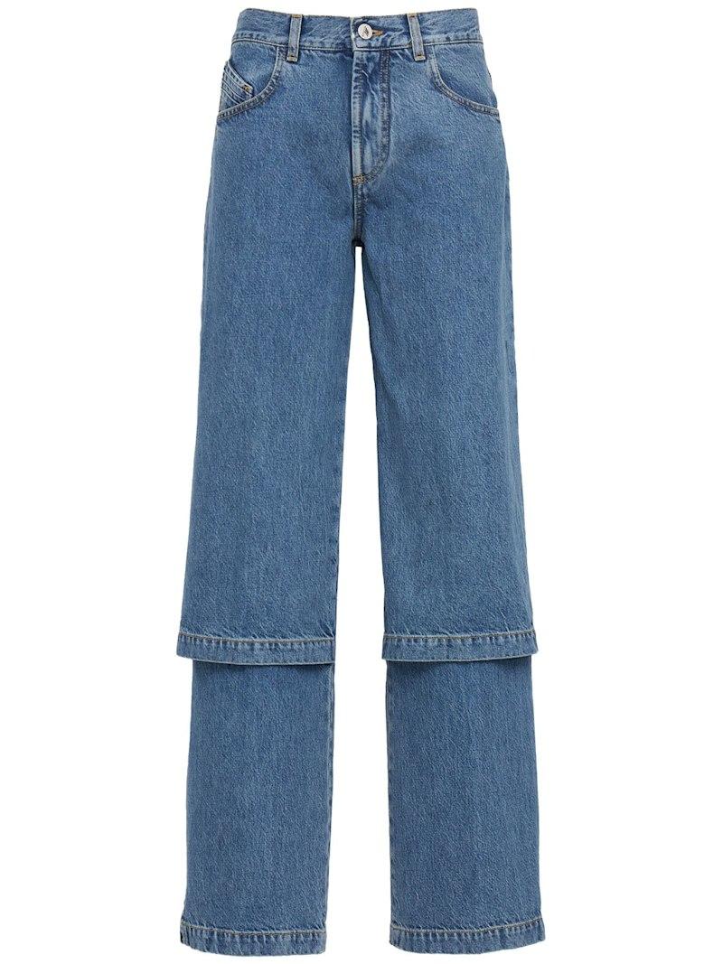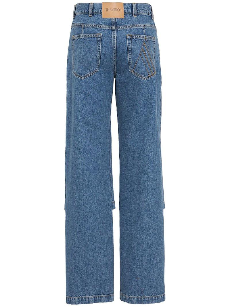 层叠宽松牛仔裤 - 蓝色 - 女士 - The Attico - 正面纽扣和隐藏式拉链开合.
