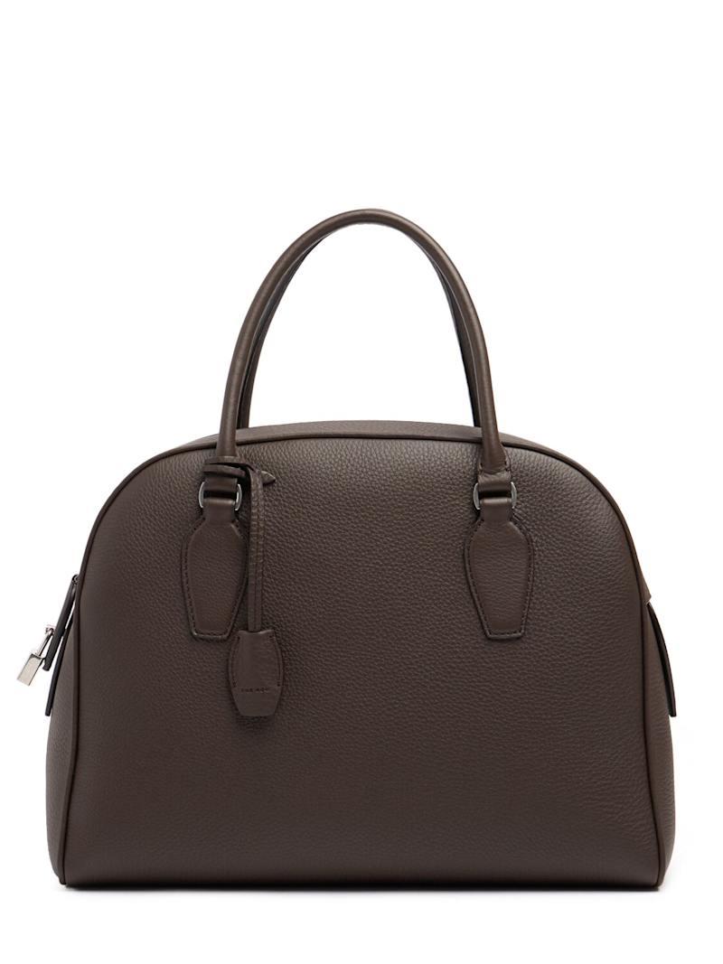 India 12 lux粒面皮革小号手提包 - 棕色 - 女士 - The Row - 可拆卸可调节肩带.