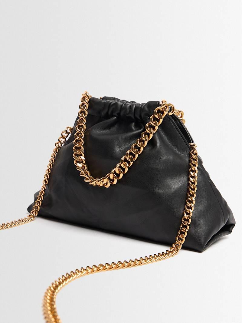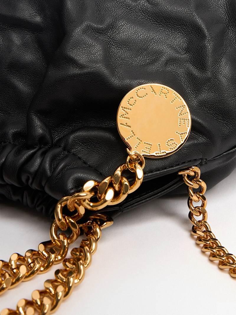 Falabella迷你褶皱抽绳手提包 - 黑色 - 女士 - Stella McCartney - 金属链条肩带.