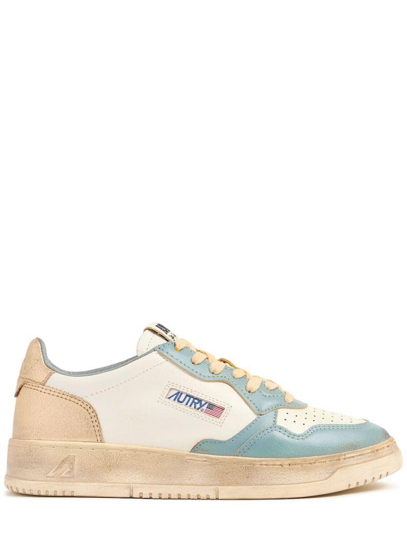 Super Vintage低帮运动鞋 - 白色/蓝色 - 女士 - Autry - 正面系带开合.
