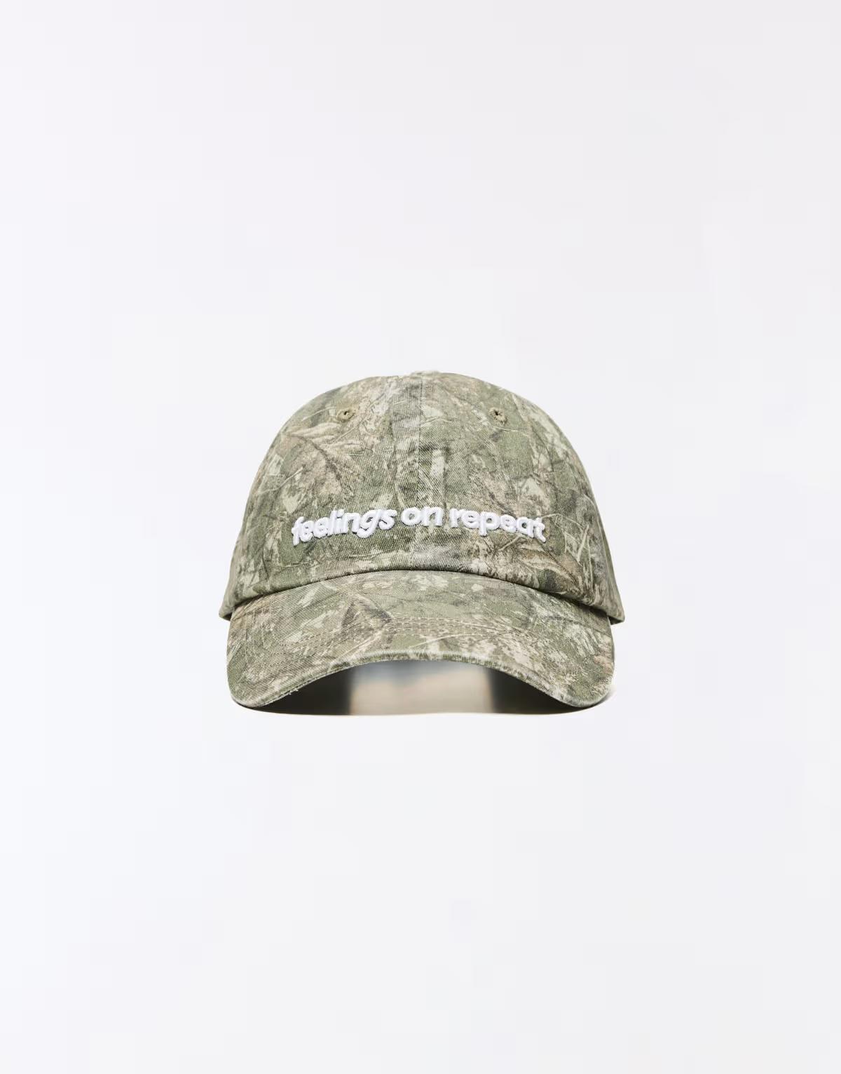 Bershka Embroidered cap in washed grey