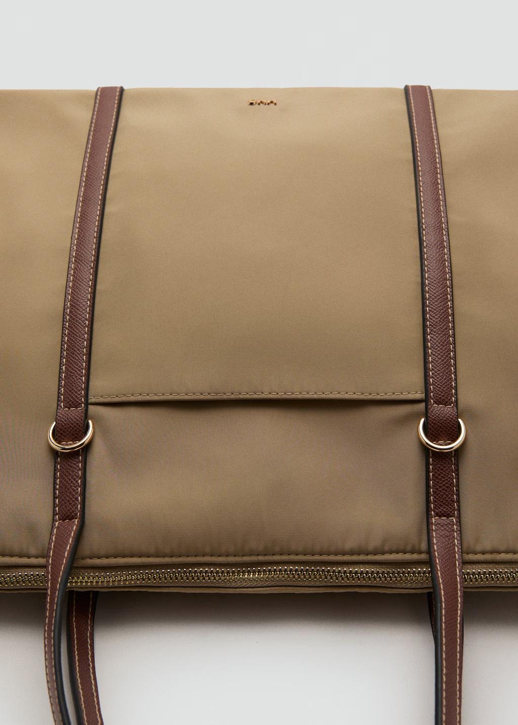 Tamaño grande. Tejido de nylon. Estilo shopper. Doble asa. Doble asa corta. Asa de hombro. Bolsillo exterior. Cierre de cremallera. Tiras de color en contraste. Asa en contraste. Cierre de cremallera. Forro interior. 45.0x30.0x14.0 cm (Largo x Alto x Ancho)