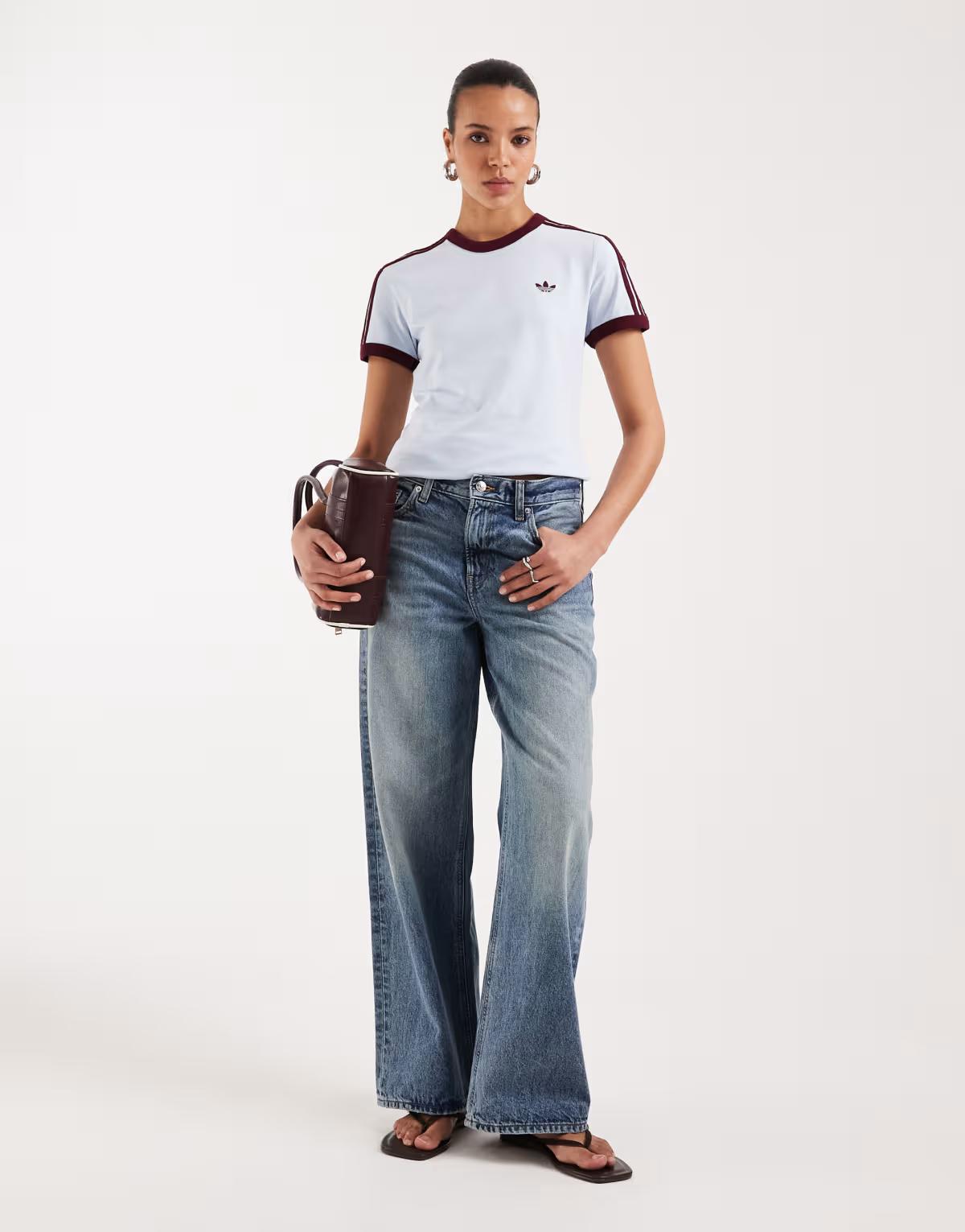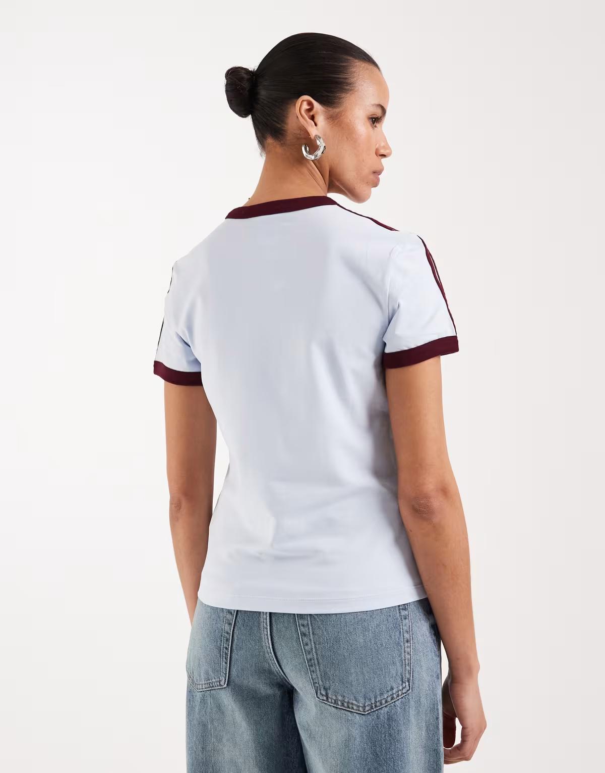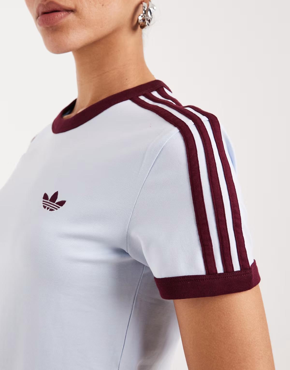 adidas Originals slim fit t-shirt in light blue and maroon