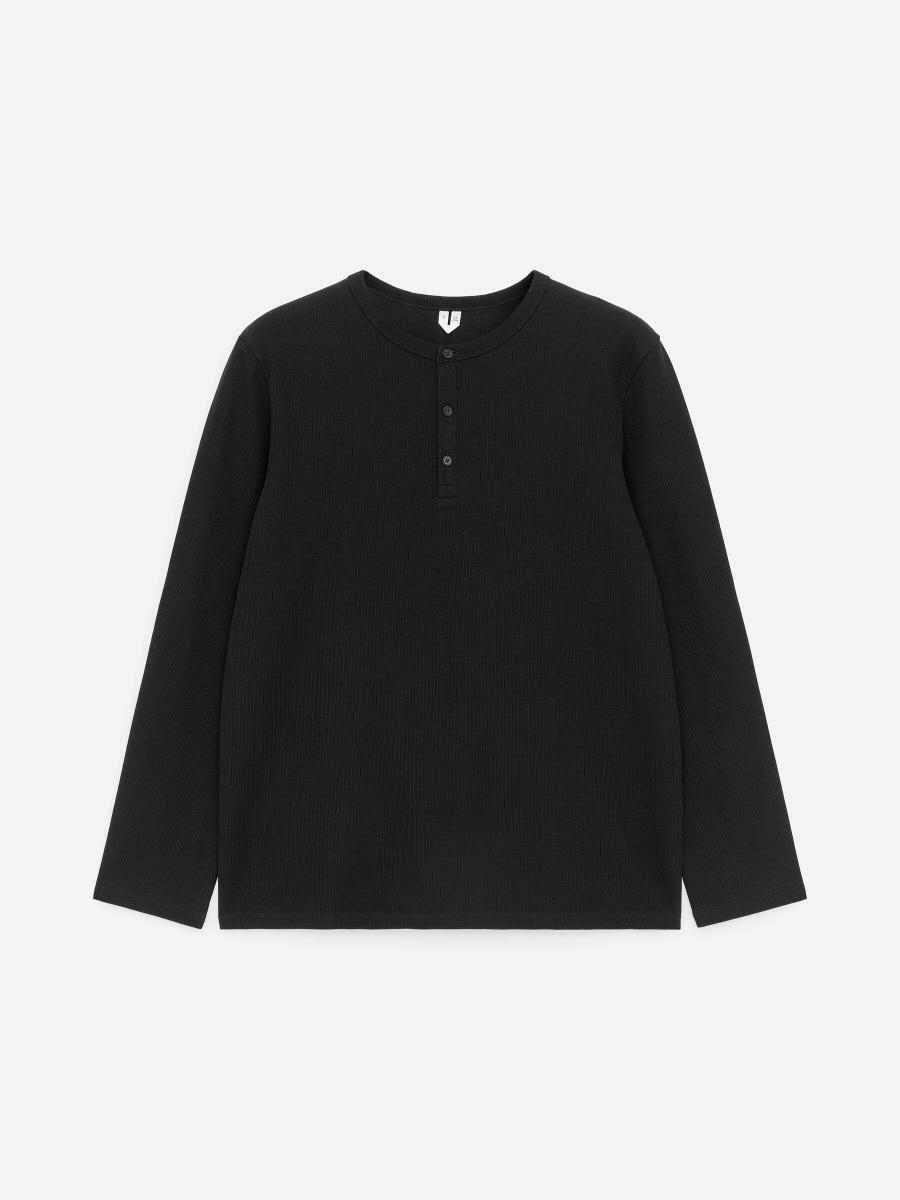A classic fitted Henley shirt crafted from a rib-knitted cotton jersey. A long-sleeve style with a ribbed neck binding and a half placket with buttoning.ARKET/Men's clothes/Men's shirts/Men's regular shirts