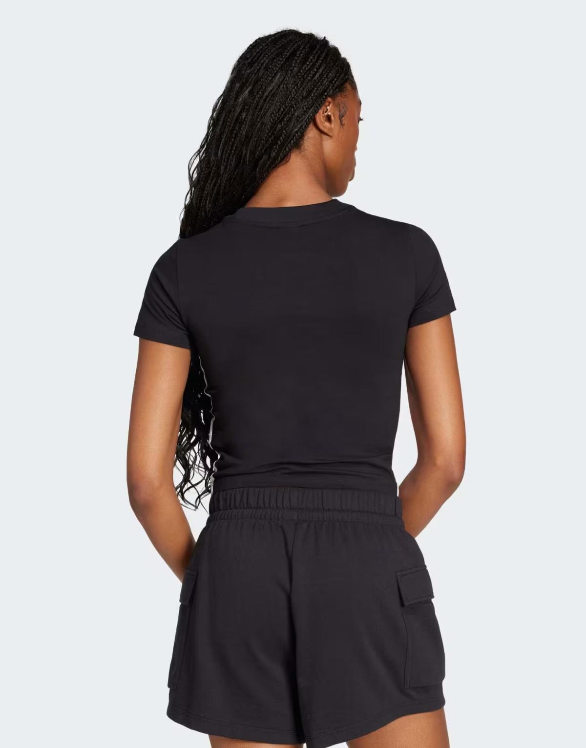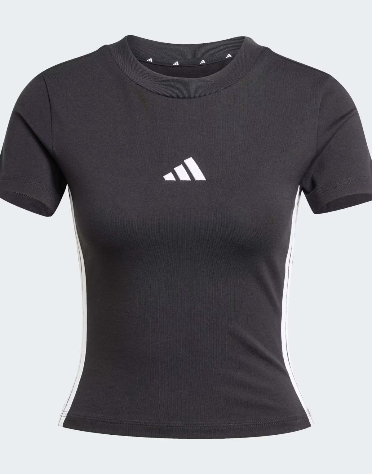 adidas performance Essentials 3-stripes slim baby tee in black / white