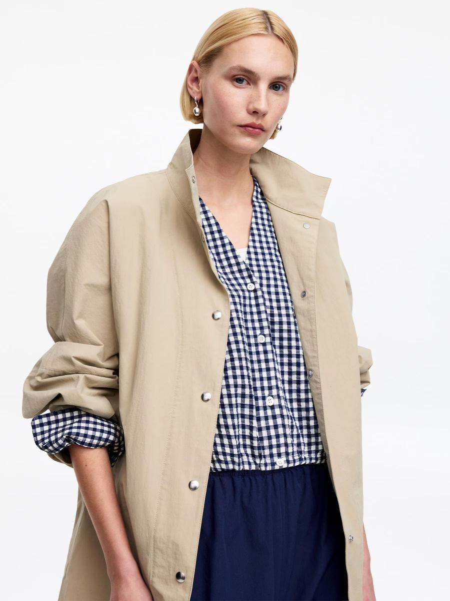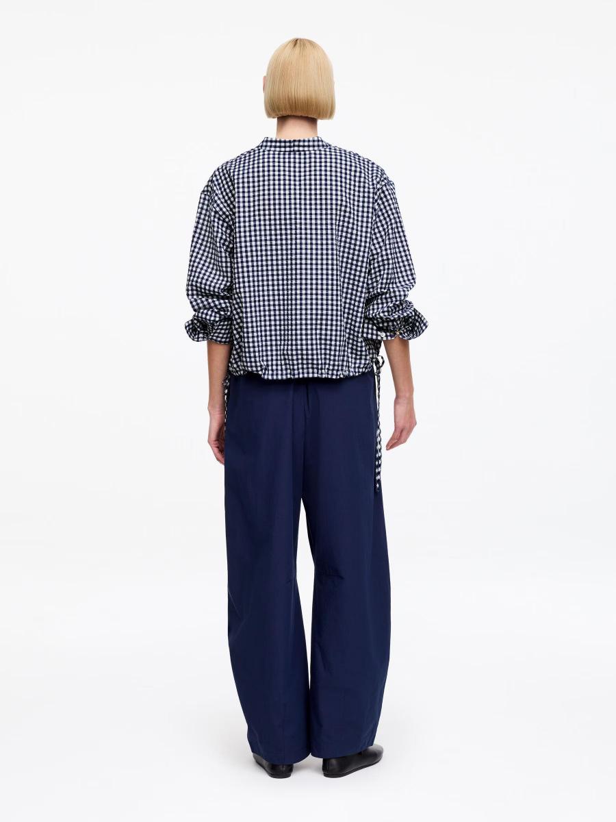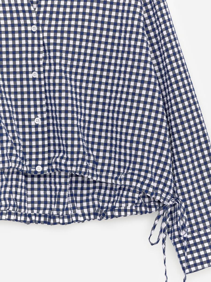 A seersucker top designed with a V-neck and buttoned front, finished with drawstring detailing at the hem.ARKET/Women's clothes/Women's shirts and blouses/Women's blouses
