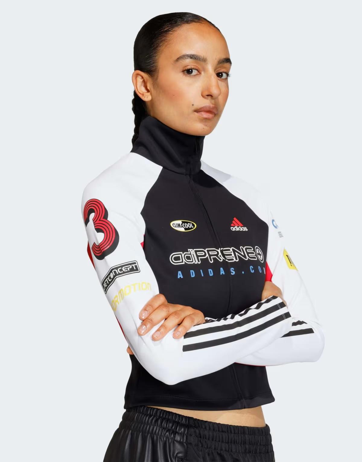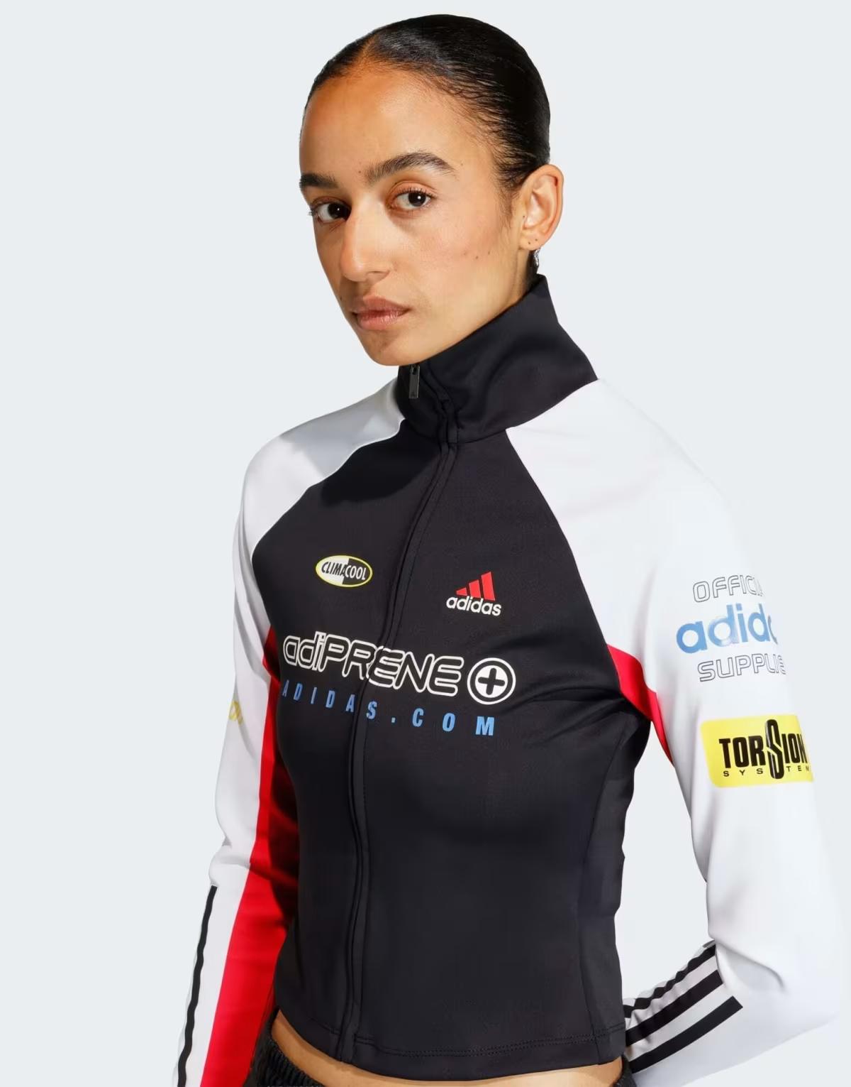 adidas Originals Teamgeist slim full zip top in black / white