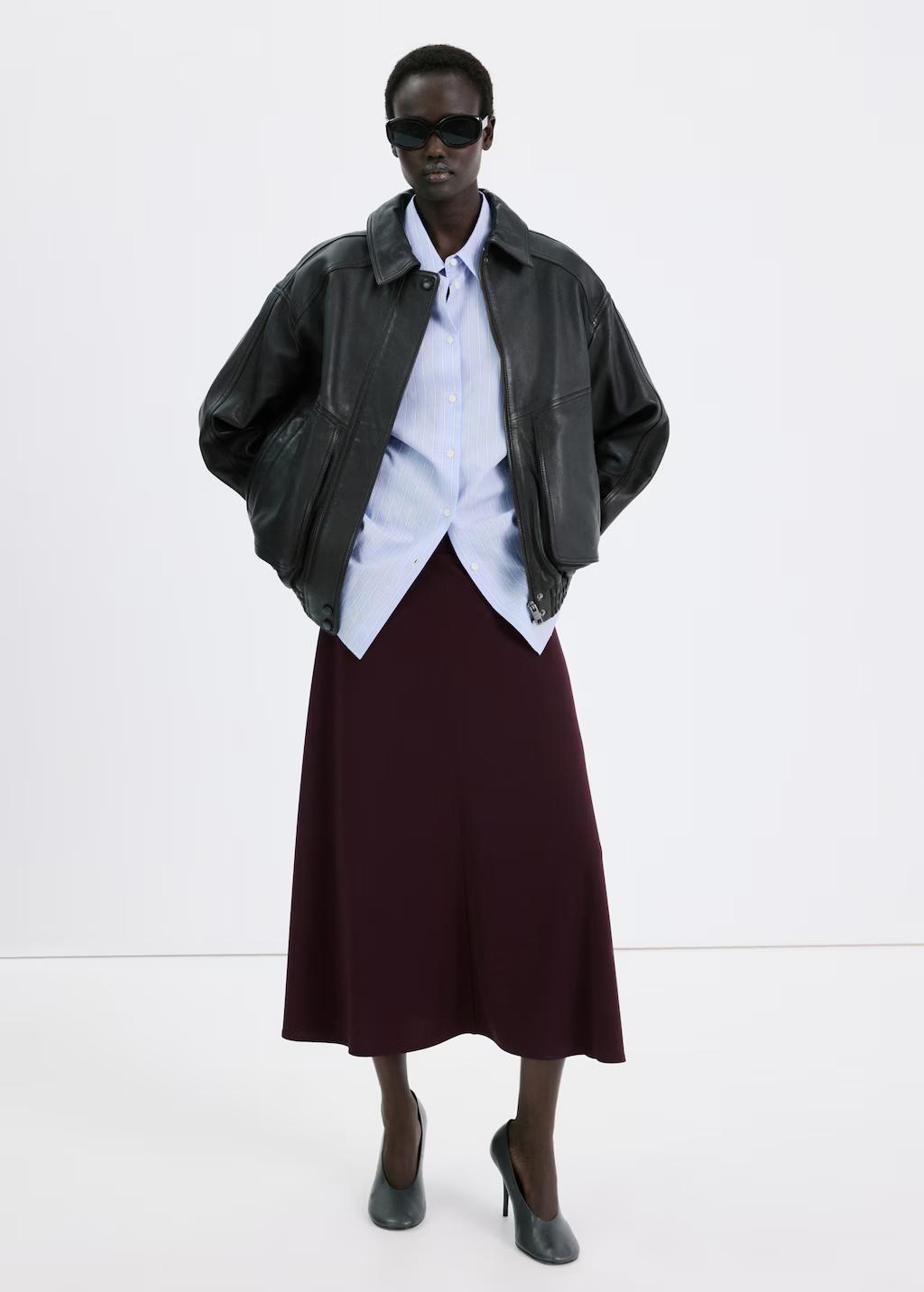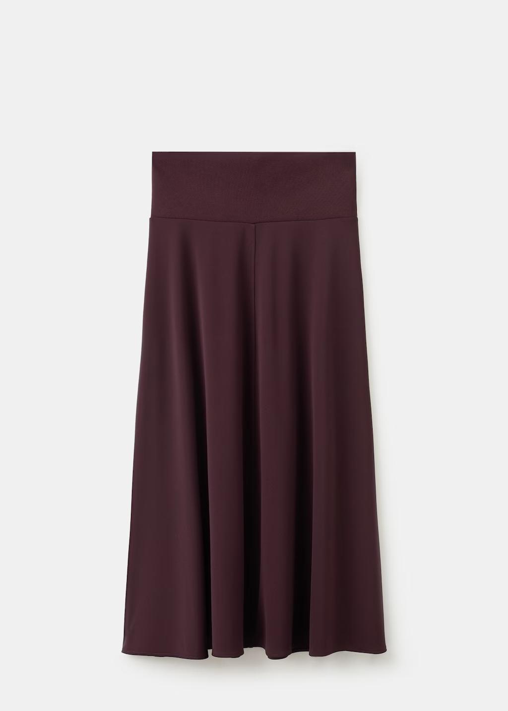 Tejido elástico de punto fino. Diseño midi. Diseño recto. Cintura con goma elástica. Sin cierre. Total look