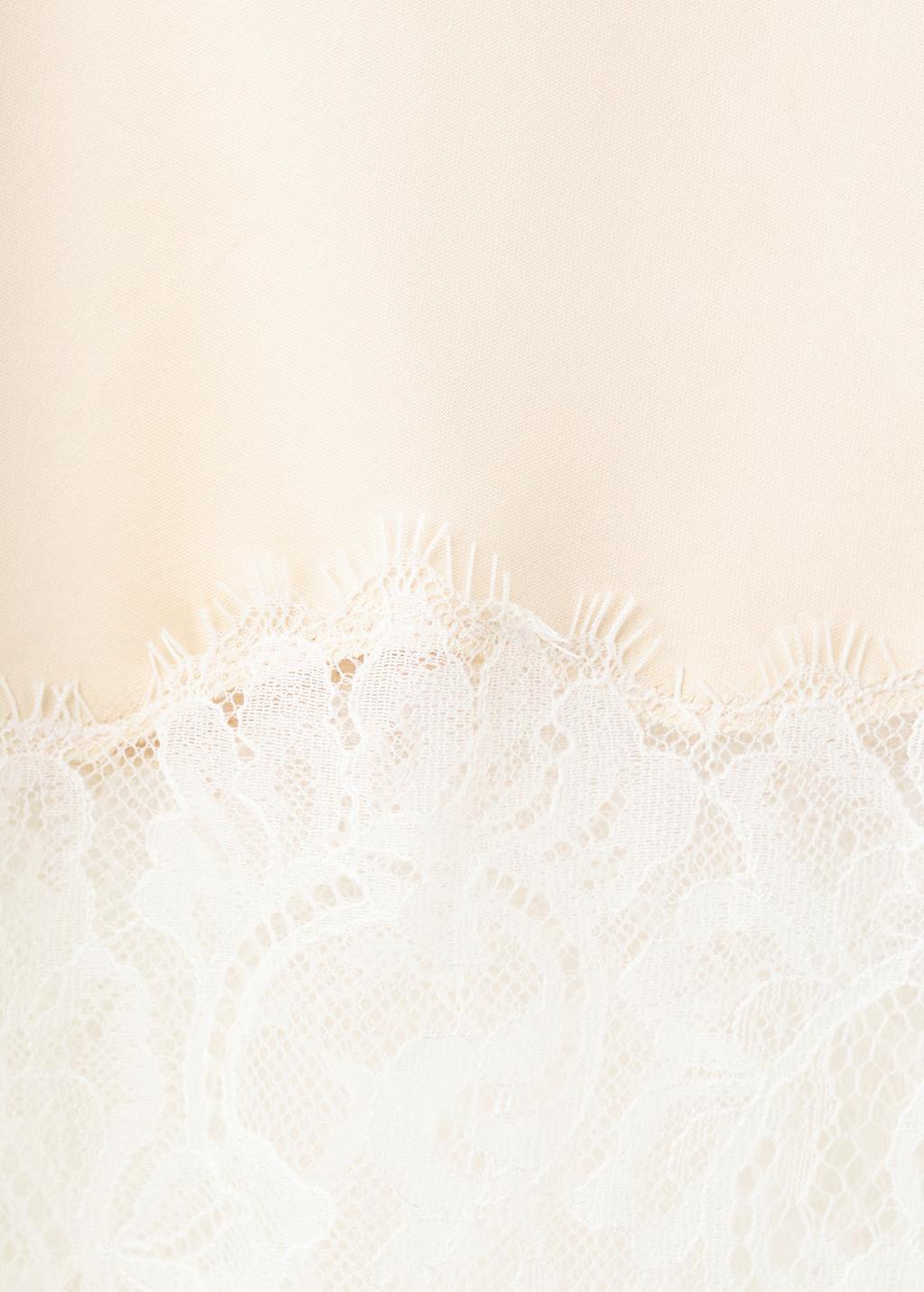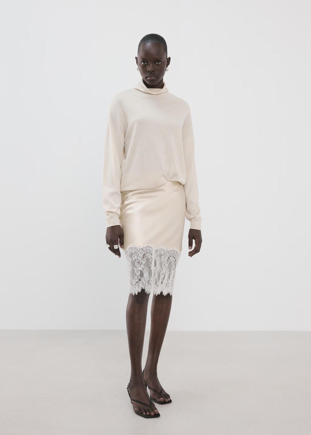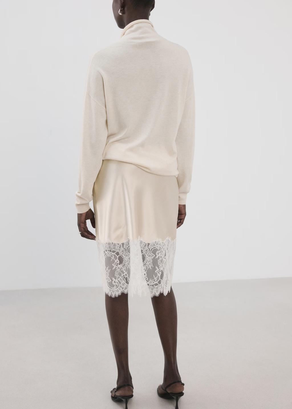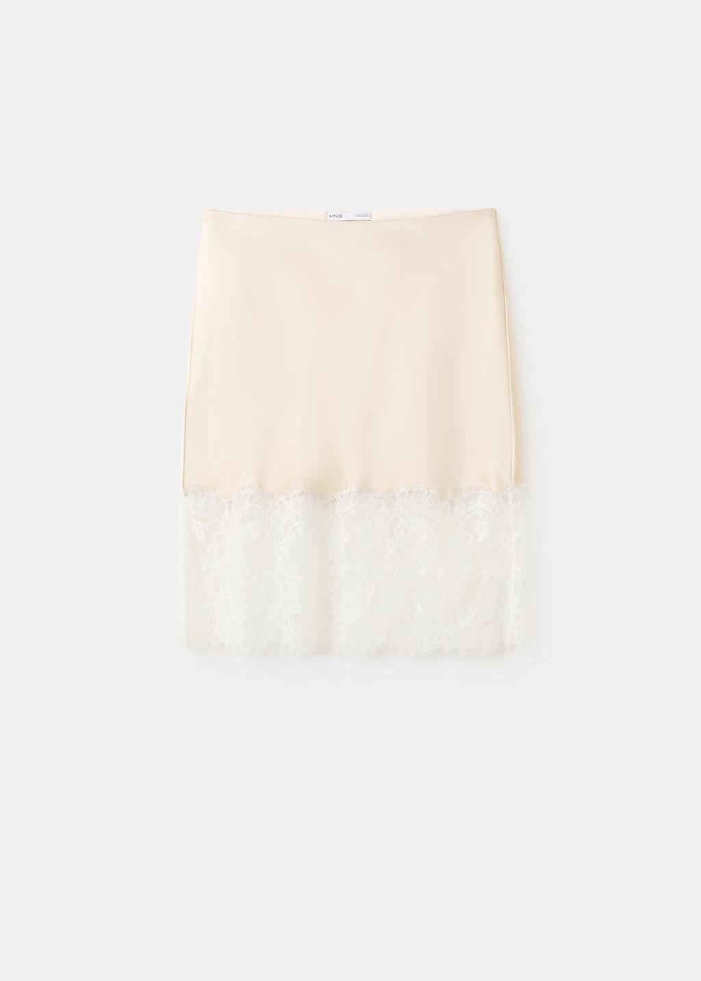 Diseño midi. Diseño recto. Estilo lencero. Ribetes de encaje. Tiro alto. Cierre de cremallera lateral. Exclusivo Online