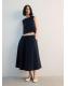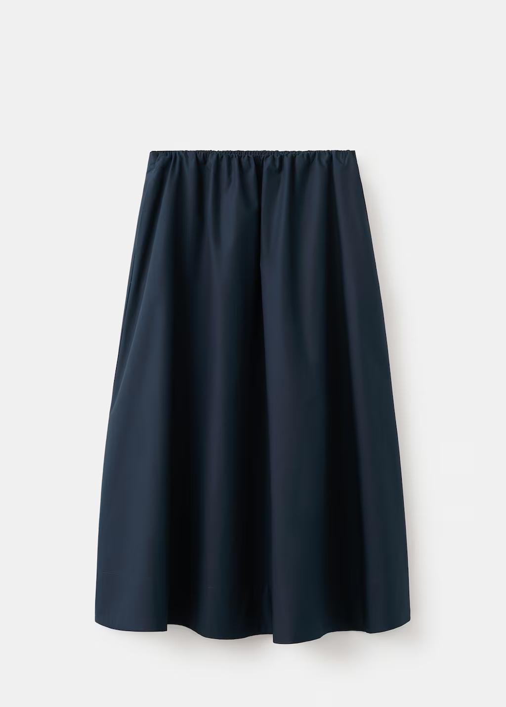 Tejido 100% algodón. Diseño midi. Diseño evasé. Detalle fruncido en la cintura. Tiro medio. Bolsillos laterales. Cintura ajustable con goma. Sin cierre. Total look