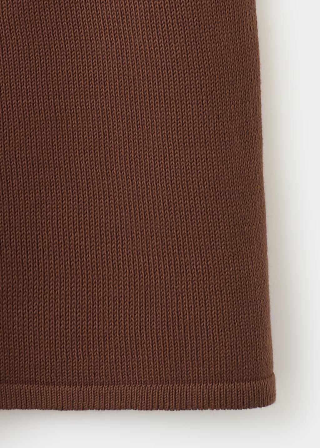 Tejido de punto. Diseño largo. Diseño lápiz. Tiro medio. Cintura con goma elástica. Abertura posterior. Sin cierre