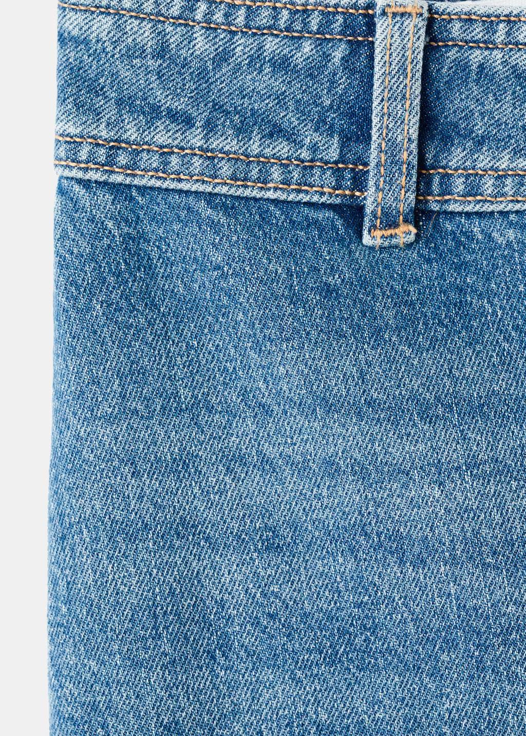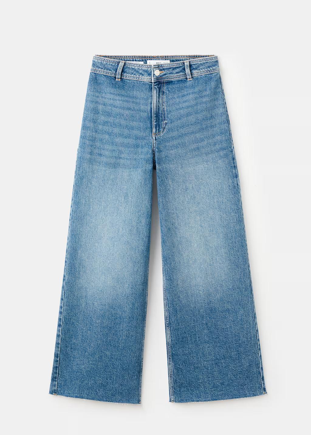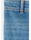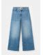 Tejido de algodón estilo tejano vaquero. Tejido elástico. Diseño culotte. Tiro alto. Trabillas. Dos bolsillos de parche en la parte posterior. Cierre delantero de cremallera y botón. Disponible Plus. Largo interior 72 cm. Bajo deshilachado
