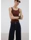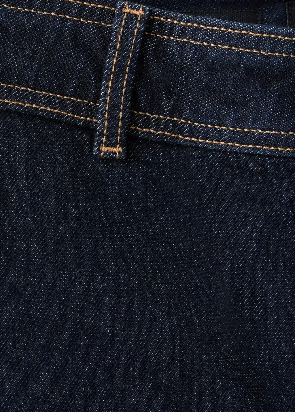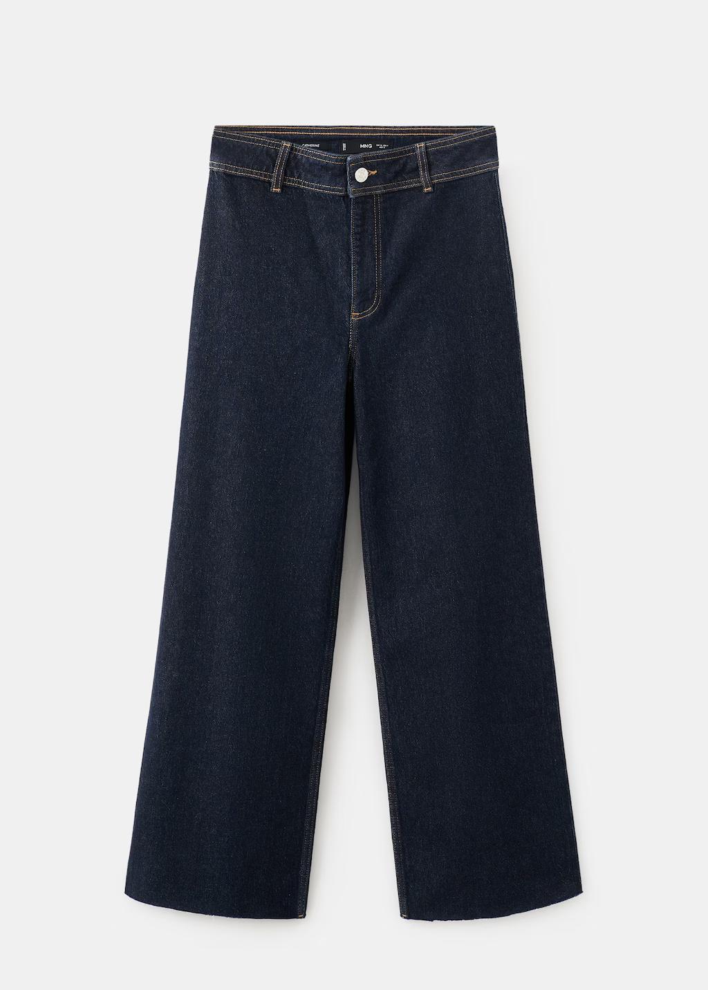 Tejido de algodón estilo tejano vaquero. Tejido elástico. Diseño culotte. Tiro alto. Trabillas. Dos bolsillos de parche en la parte posterior. Cierre delantero de cremallera y botón. Disponible Plus. Largo interior 72 cm. Bajo deshilachado