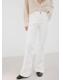 Tejido de algodón estilo tejano vaquero. Tejido elástico. Diseño largo. Estilo flare. Tiro alto. Trabillas. Cinco bolsillos. Cierre delantero de cremallera y botón. Largo interior 87,5 cm
