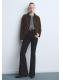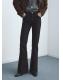 Tejido de algodón estilo tejano vaquero. Tejido elástico. Diseño largo. Estilo flare. Tiro alto. Cinco bolsillos. Cierre delantero de cremallera y botón. Largo interior 87,5 cm