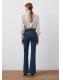 Tejido de algodón estilo tejano vaquero. Tejido elástico. Diseño largo. Estilo flare. Tiro alto. Trabillas. Cinco bolsillos. Cierre delantero de cremallera y botón. Largo interior 87,5 cm