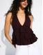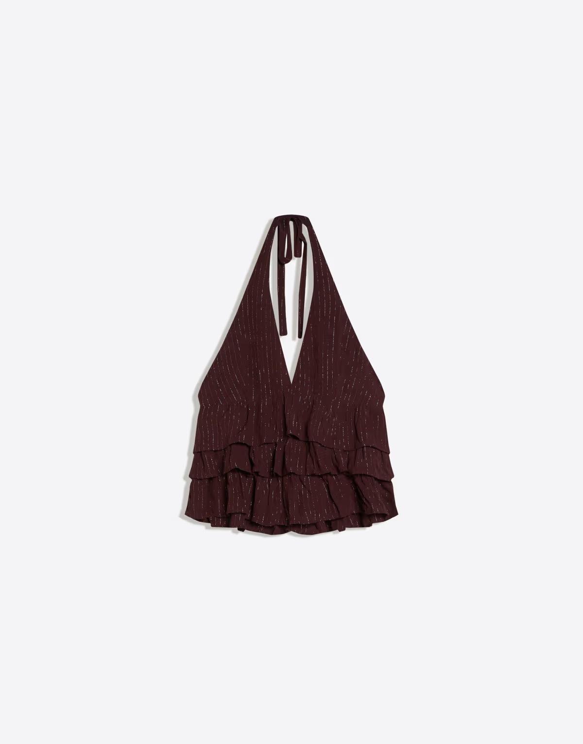 Bershka Shimmery ruffle top in brown