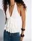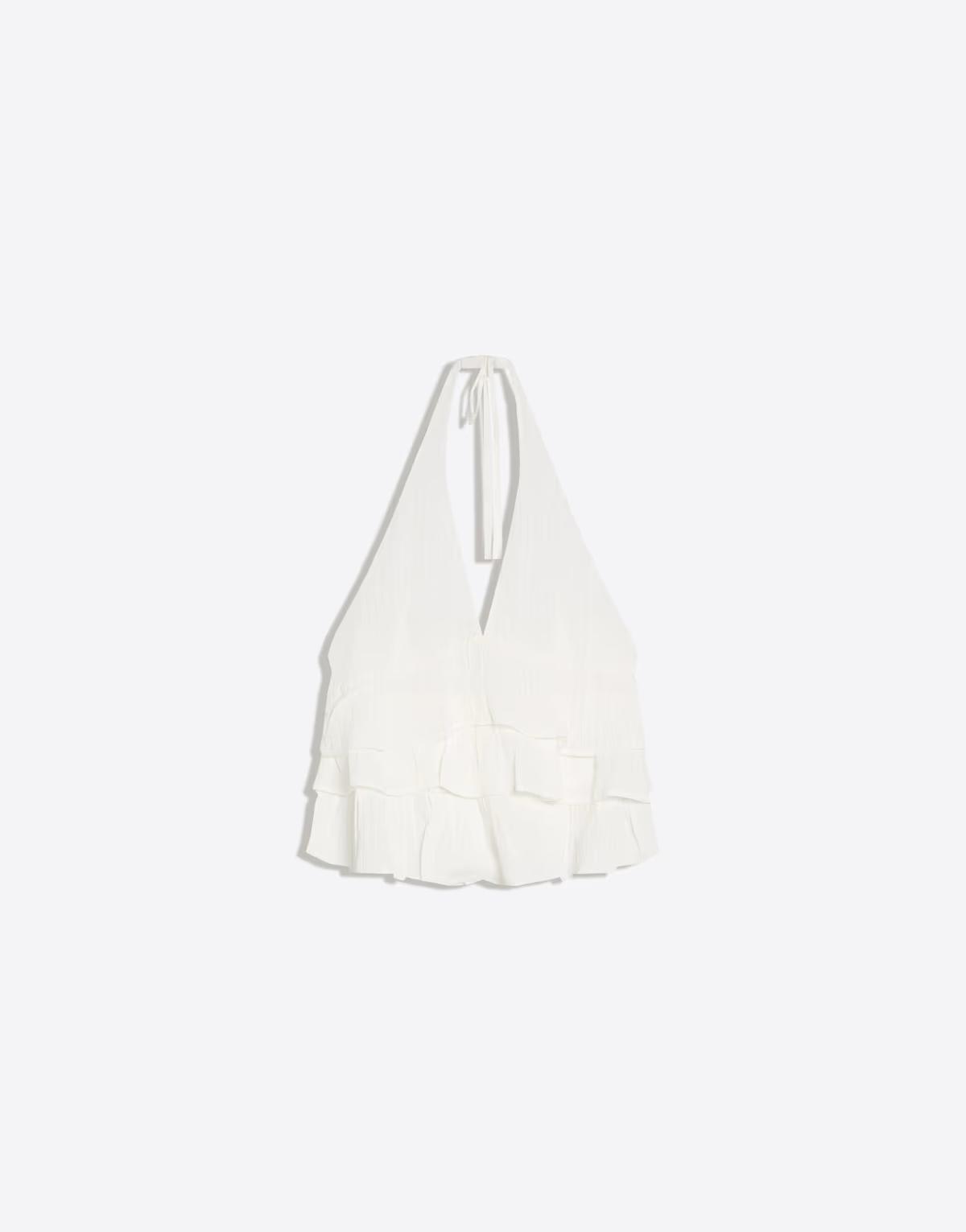 Bershka Shimmery ruffle top in white