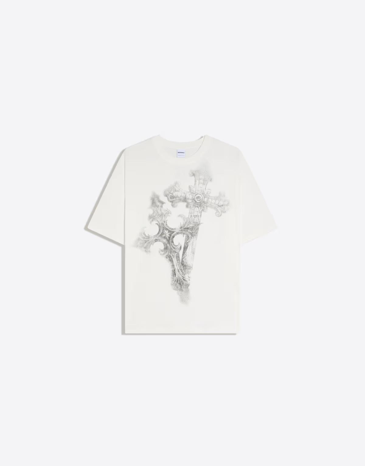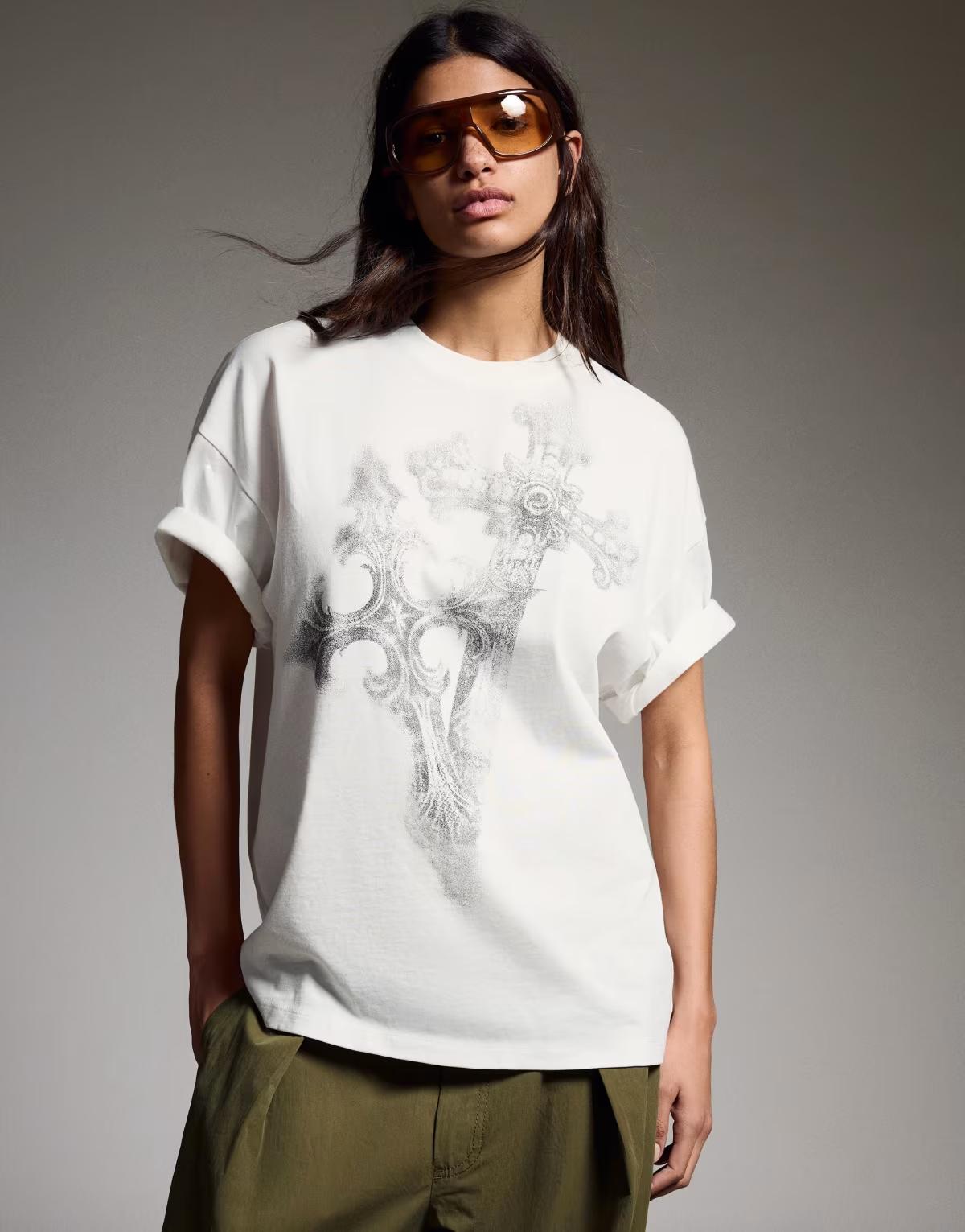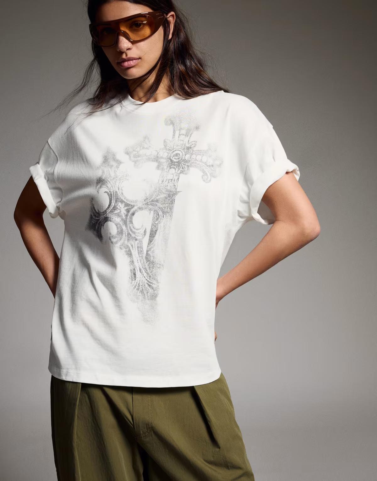 Bershka Short sleeve oversize print t-shirt in white