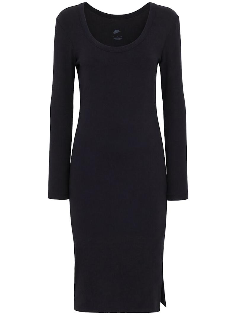 Chill Knit Tight Long-Sleeve Midi dress - Black/Sail - 女士 - Nike - Embroidered logo detail.