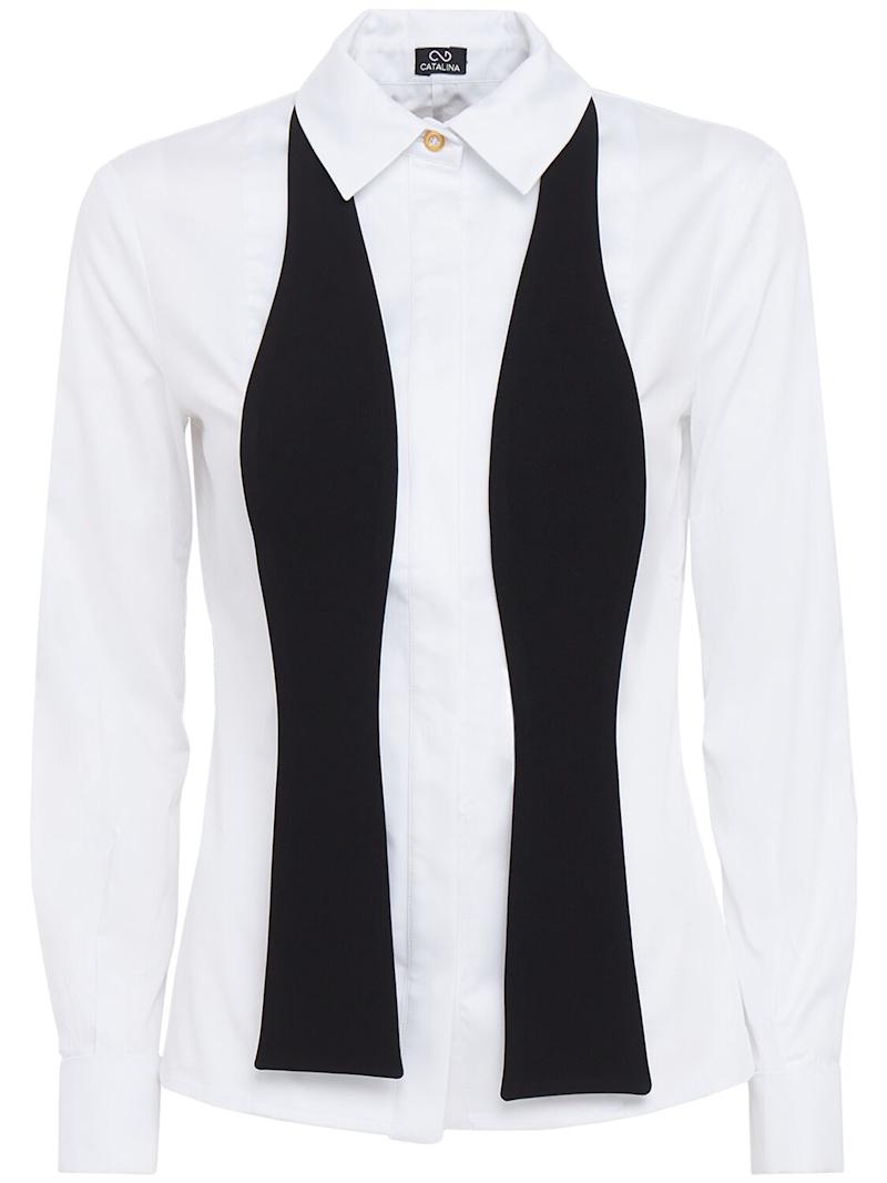 Cotton blend shirt w/ tie - 白色 - 女士 - Catalina - Front button closure.