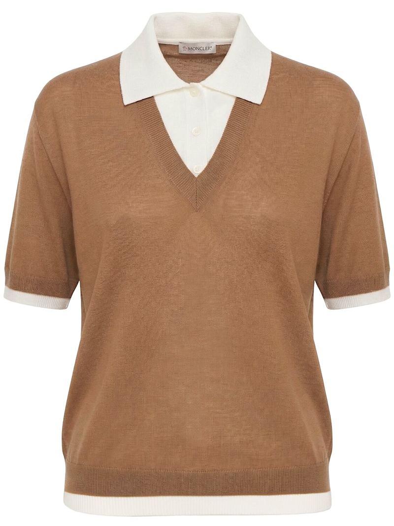 Layered virgin wool blend polo shirt - 米黄色 - 女士 - Moncler - Crafted from wool.