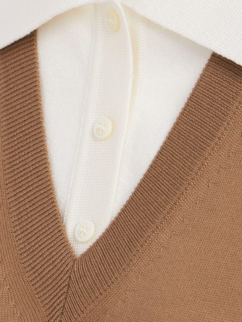 Layered virgin wool blend polo shirt